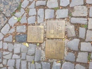 Placas conmemorativas en las calles que recuerdan a las víctimas del Holocausto, invitándonos a reflexionar sobre los días más oscuros de la historia.